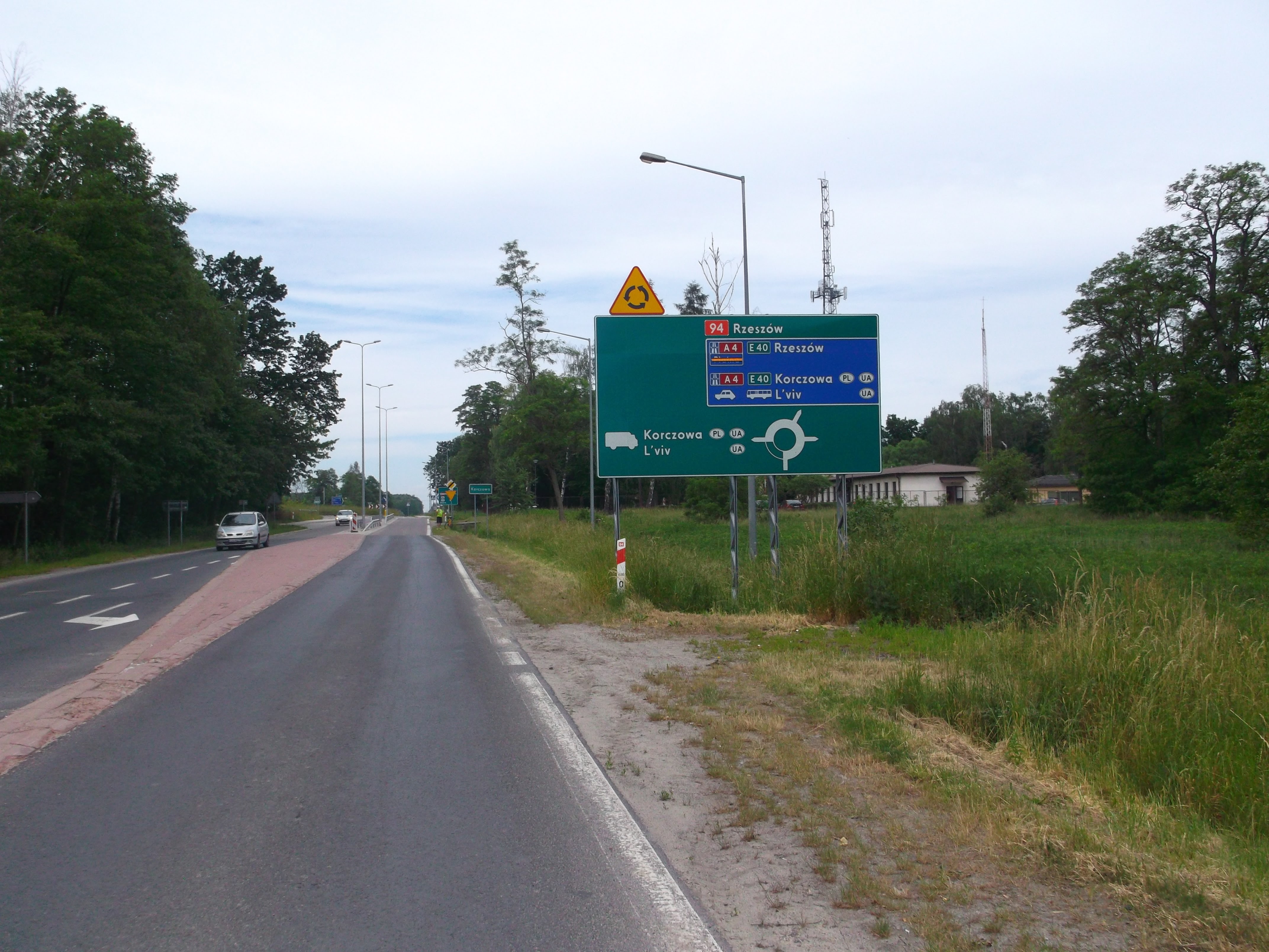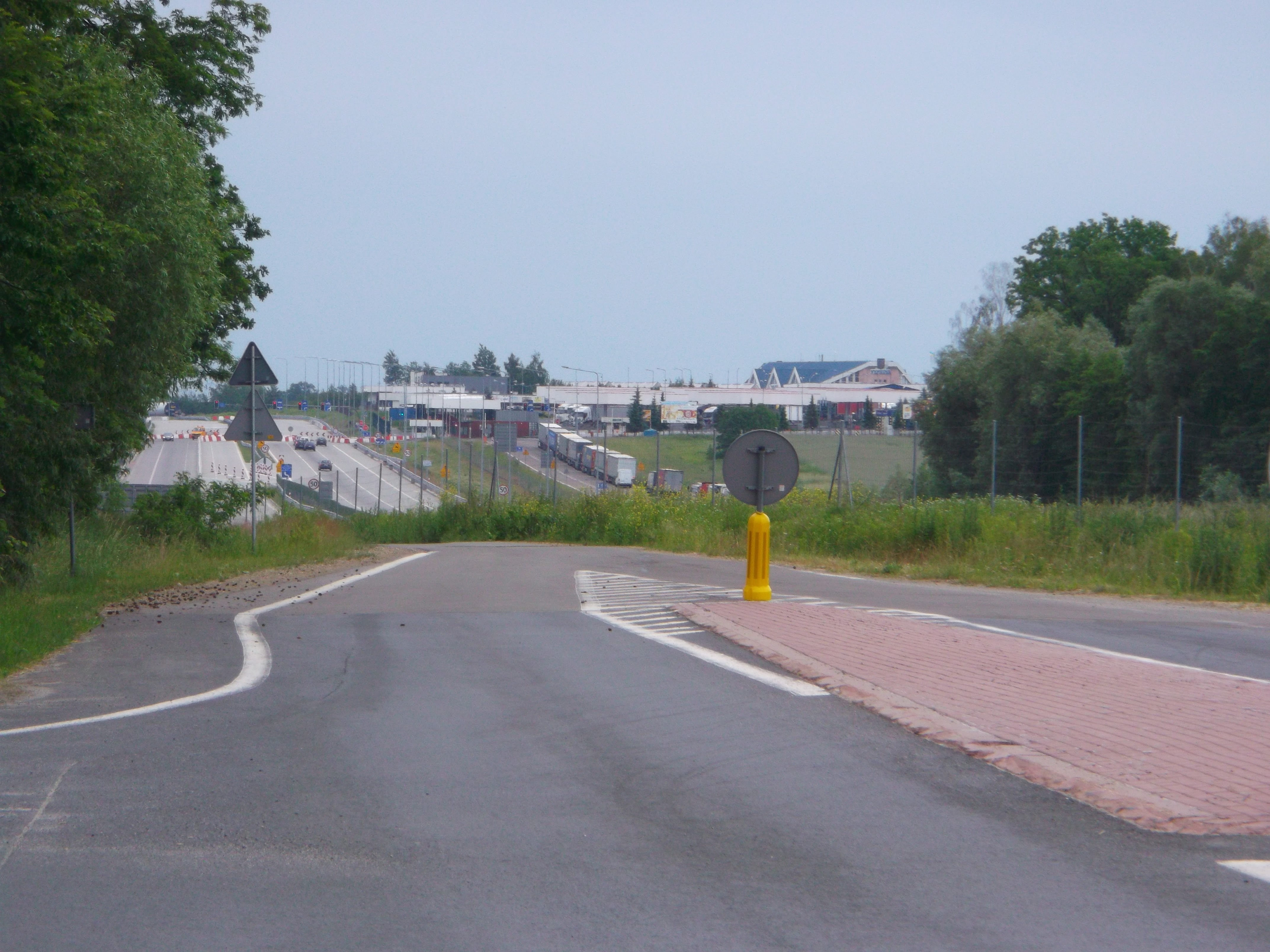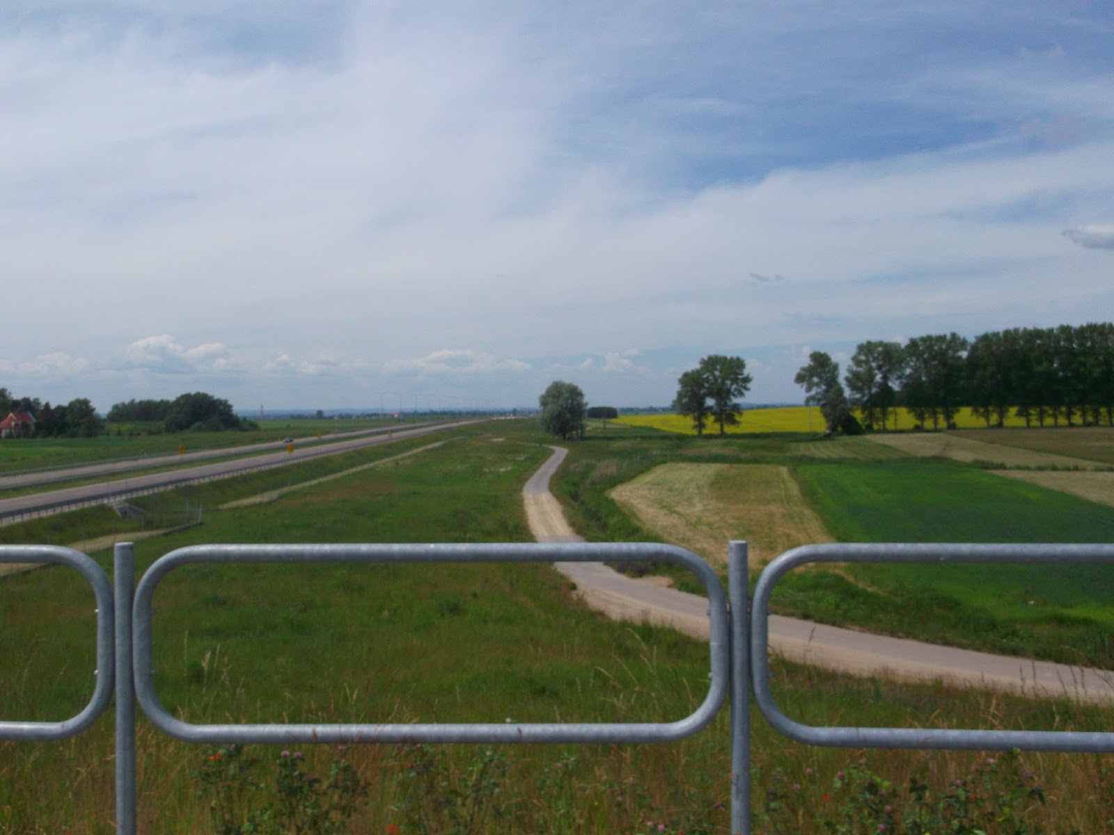 Dojeżdżamy w końcu do krajówki. Na szczęście prawie równolegle biegnie autostrada więc ruch nie dokucza nam za bardzo. Mateusz podejmuje już ostateczną decyzję, że kończy w Przemyślu. Sprawdza rozkład jazdy i pogania mnie żeby zdążyć na pociąg.