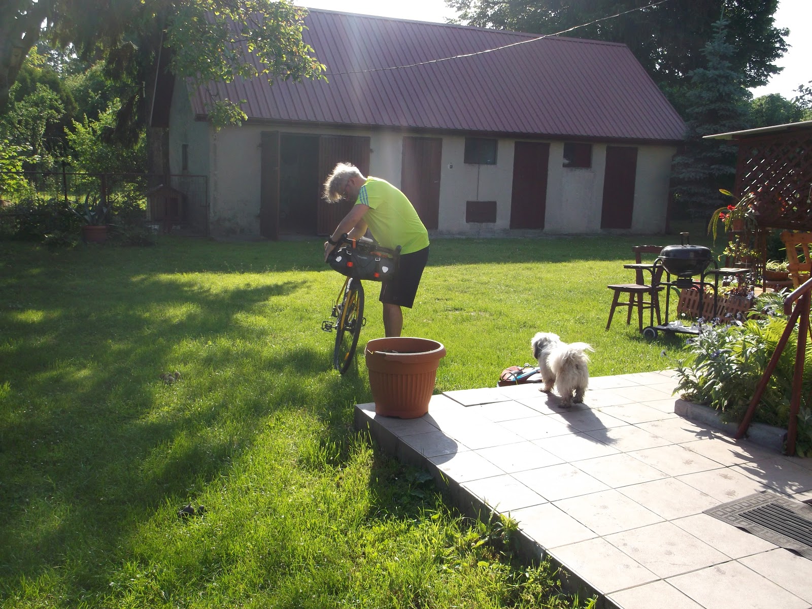 Rankiem przywitało nas słoneczko i włochaty stworek na podwórku. Szybkie wyciąganie rowerów z ich sypialni w garażu, instalowanie sakw i w drogę.