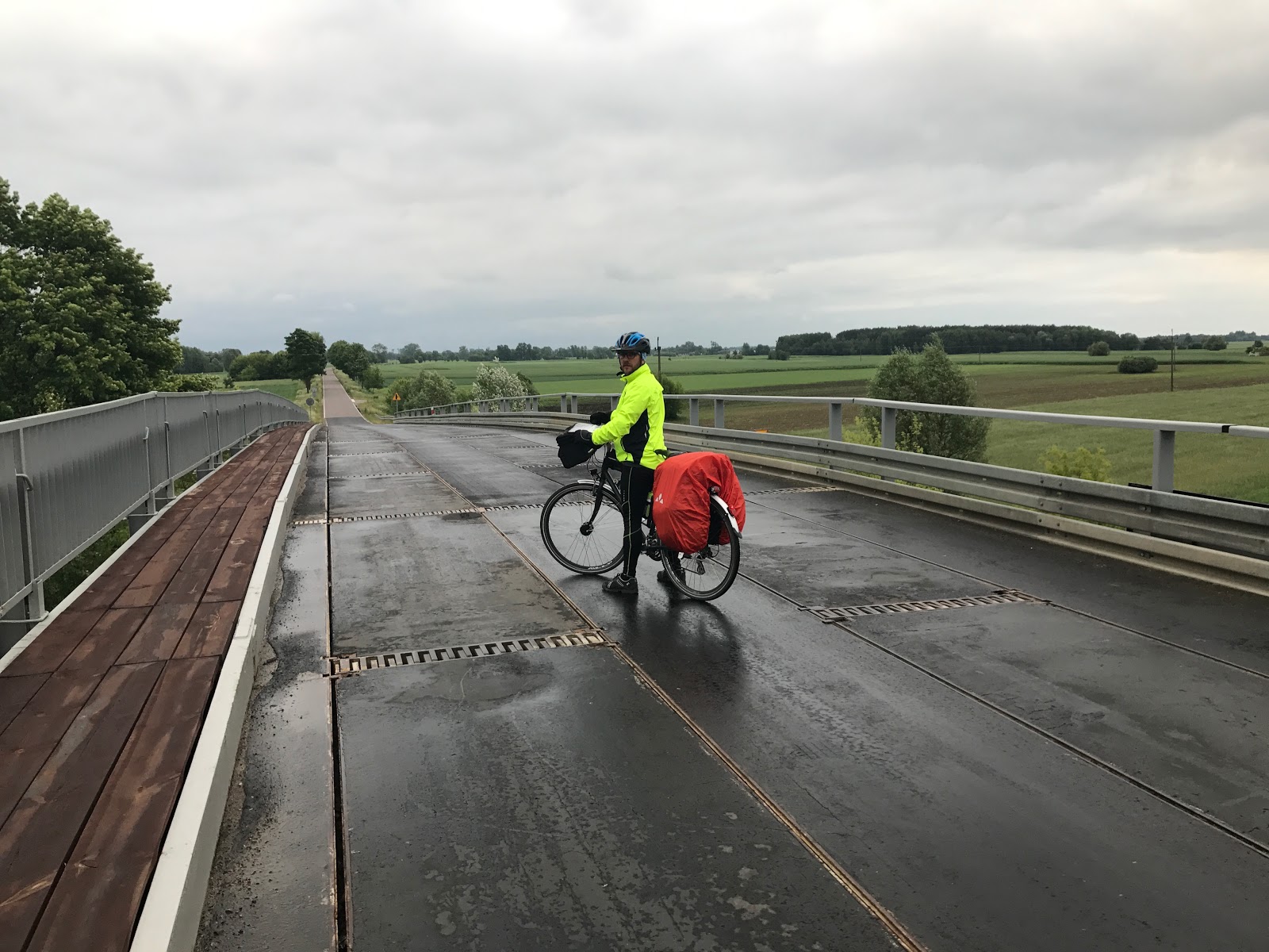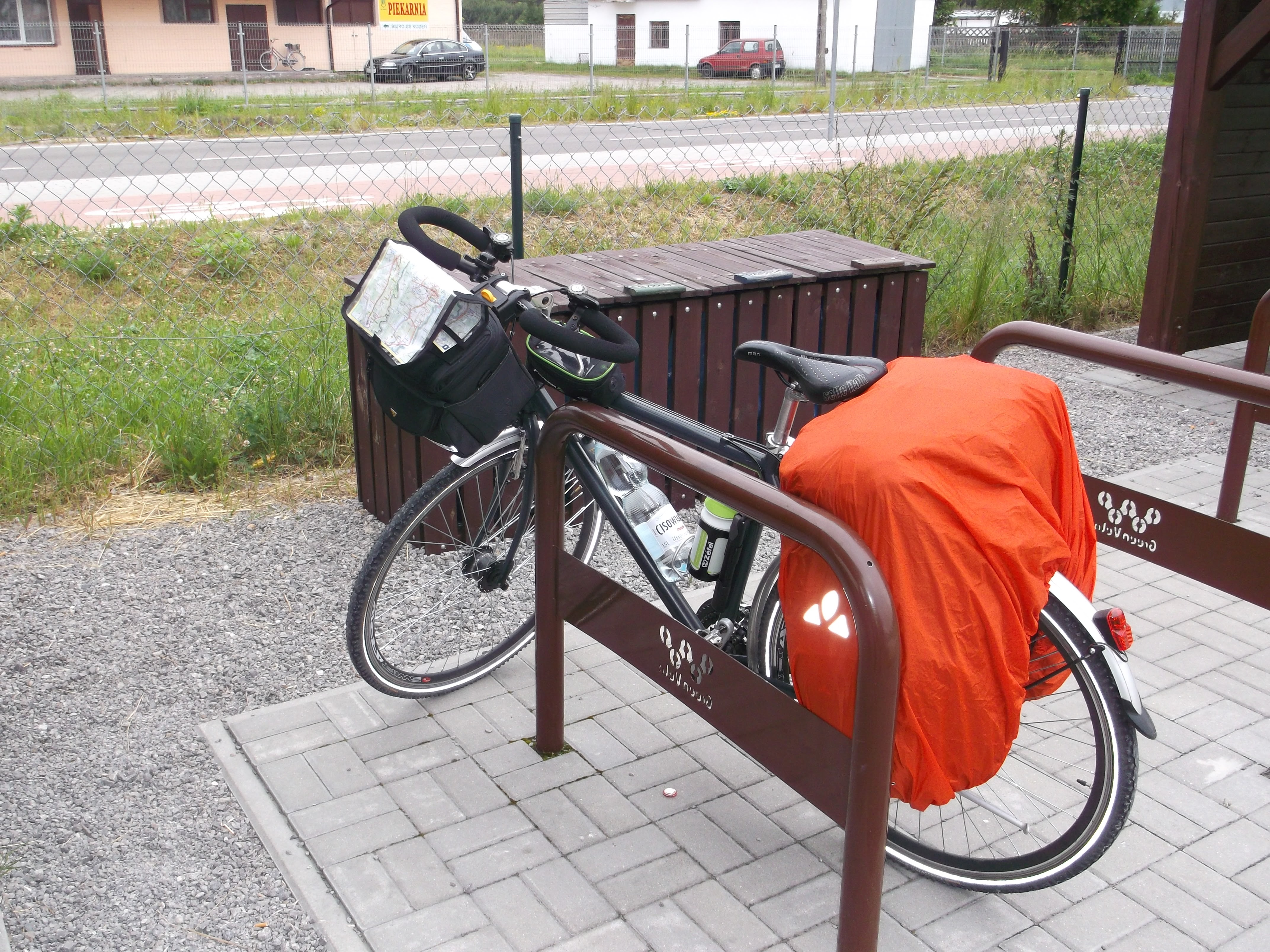 Miasto wita nas nieco ładniejszą aurą i zamkniętymi sklepami. W jedynym otwartym nie ma jeszcze pieczywa… Czekamy grzecznie chwilę na dostawę z piekarni i ruszamy skrótami na południe. Zaoszczędzamy przy wyjeździe z miasta na dystansie, ale musimy przenosić rowery nad barierami przy drodze bo z naszej strony nie da się w jechać na drogę, którą chcemy jechać.