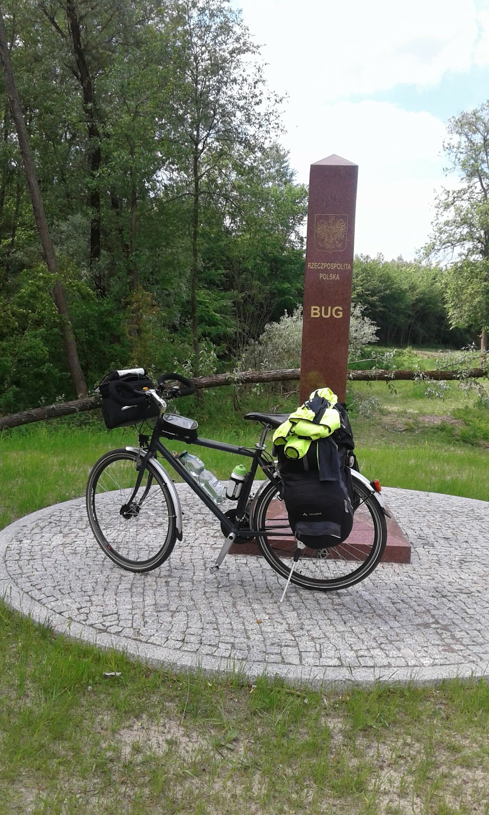 Do trójstyku docieramy przez krzaki i okrężną drogą bo oznaczenie dojścia do tej atrakcji nie jest oczywiste. Po chwili odpoczynku i pamiątkowych zdjęciach wracamy na trasę pedałując do upatrzonego noclegu w Dubience.