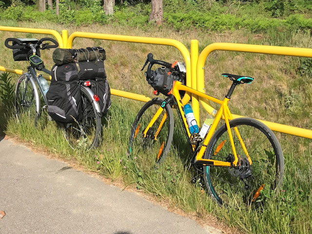 Rower uzbrojony w system sakw w trakcie wyprawy.