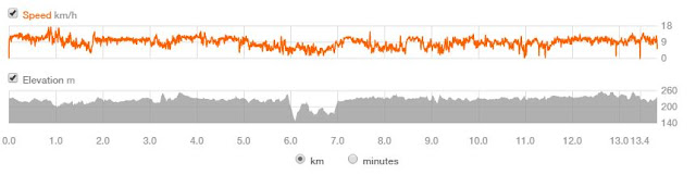 Wykresy prędkości biegu i wysokości na trasie. |