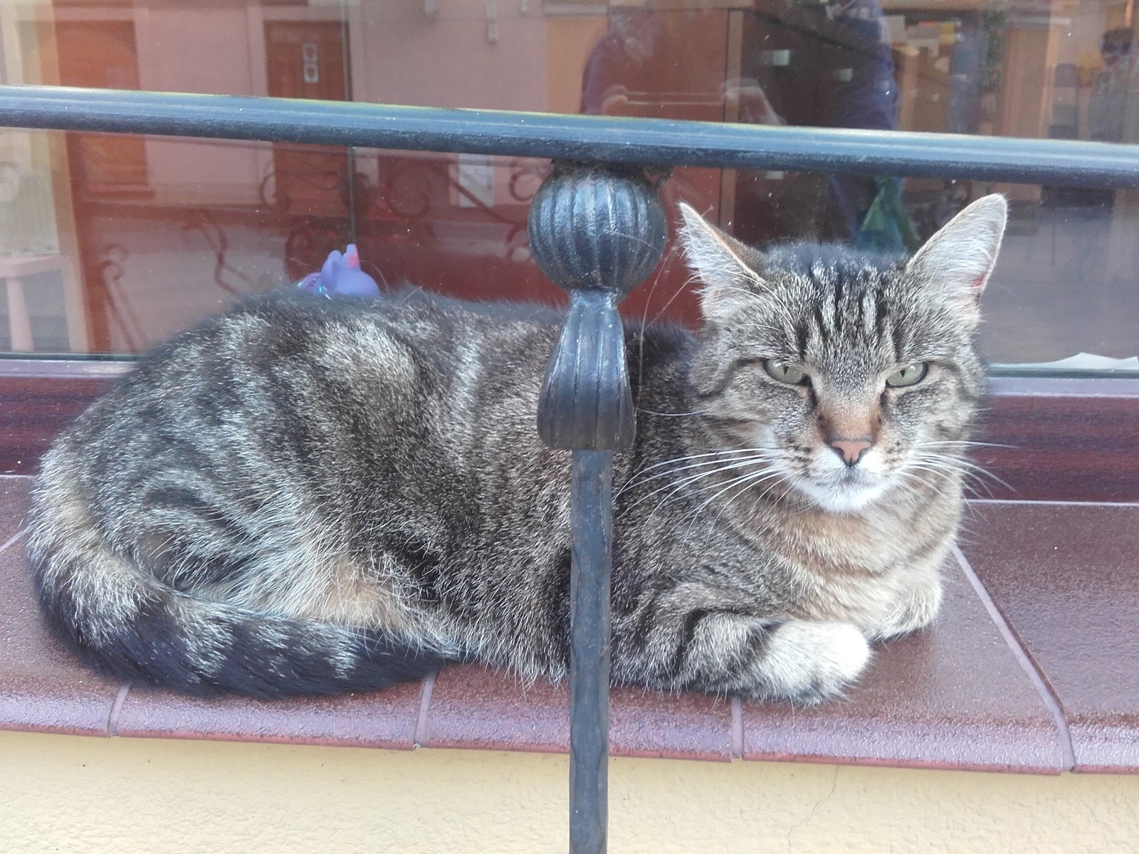 Restauracji Bazyliszek. Przy okazji podziwiamy miejscowych rowerzystów – lanserów regenerując siły przy zimnym regionalnym piwie. Dyżurny kot ma nas na oku, leży na parapecie sklepu jak ochroniarz w dziwnym lokalu przez, który wracamy na nocleg.